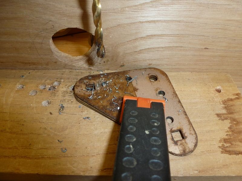 I also found a box full of metal corner plates which had to be re-drilled to take a more suitable screw size.