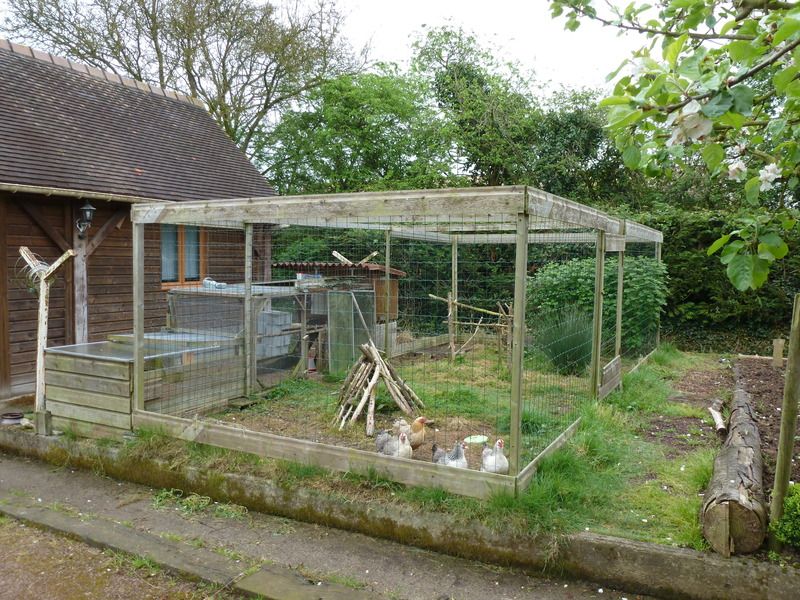 A view of the current configuration showing the large enclosure used during the day when we do not want them roaming around the garden in the summer months.