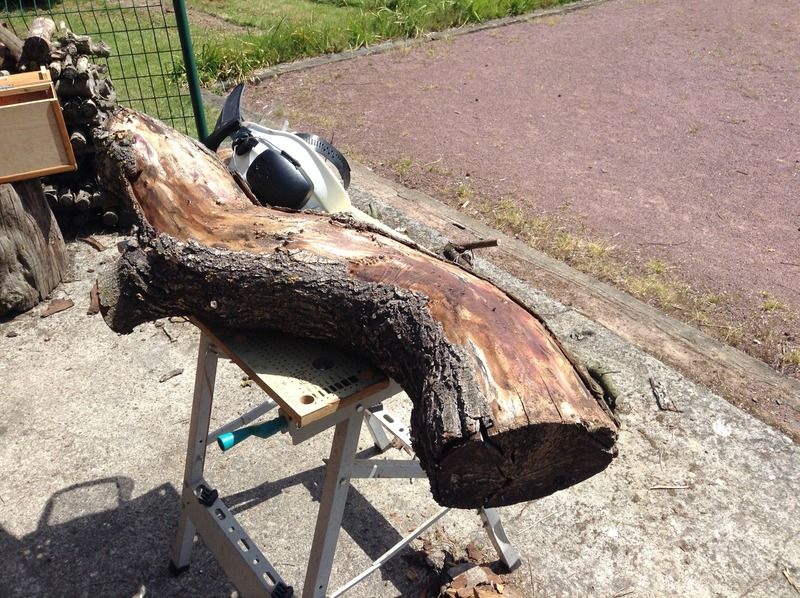 This lump of willow that had been hanging around on the terrace since Dec 2013 was beginning to get in the way.